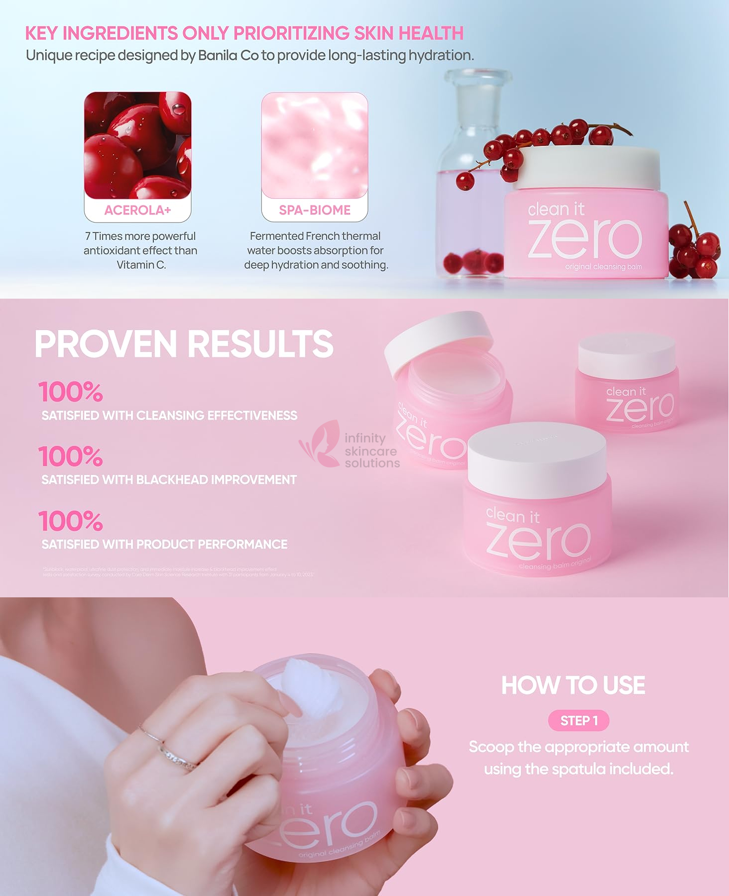 Banila Co Clean It Zero Original is a world-famous, award-winning cleansing balm designed to melt away even the most stubborn makeup, excess oil, and impurities without stripping the skin’s natural moisture. Formulated with a proprietary 3-in-1 Zero Balance Technology, it effectively cleanses, exfoliates, and hydrates in one simple step.